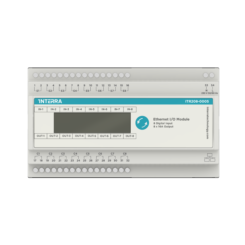 The Interra Ethernet I/O module is a versatile device that allows a variety of configurations and provides cost-effective automation for smart home applications. The Ethernet module is intended to meet various automation requirements in a smart building for safe and efficient operations.