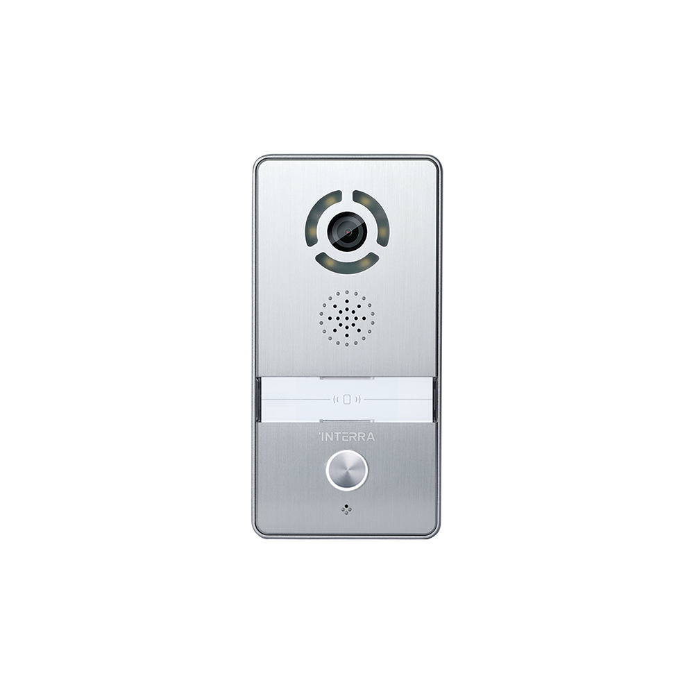 With its minimalist, elegant and strong aluminum design, ITR641-0005 Interra Surface Mounted Villa Type Push Button Intercom Outdoor Switchboard is mainly used to control doors and exterior doors in villas, residences and office projects. 20,000 IC/ID cards can be added for door unlocking, and when equipped with an optional unlock module, two relay outputs can be connected to control two locks. Its weatherproof and vandal-proof design ensures the stability and service life of the device. It can be powered by PoE or an external power supply.
