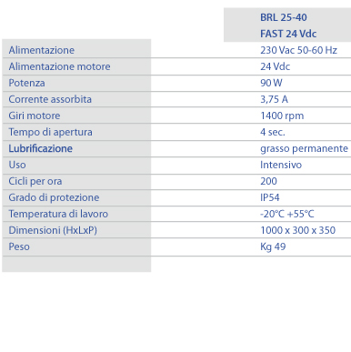 Electromechanical road barriers for passages from 2.5 m to 6 m useful. DC gearmotor for intensive use, round-shaped anodized aluminum telescopic rods adjustable in length. Available with protective hedge, pendent or fixed foot and articulated rod for covered passages.