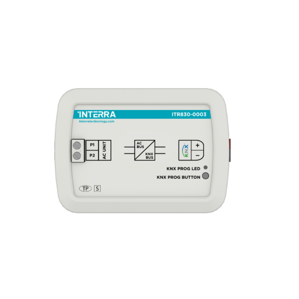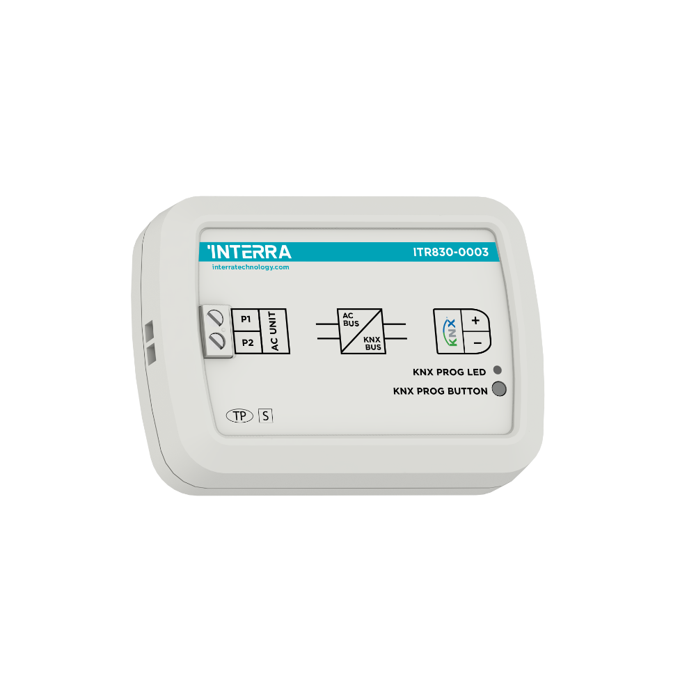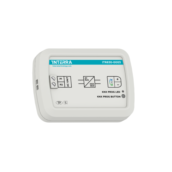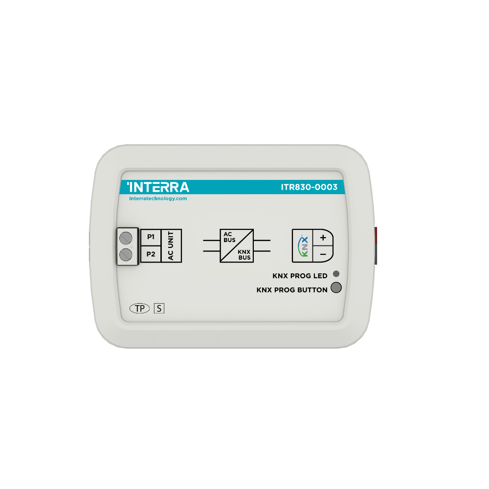 • ITR830-0003 device provides bi-directional integration of Daikin Sky & VRV air conditioners with KNX bus line.