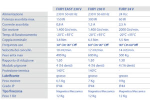 The new FURY series gearmotor for sliding gates combines the great reliability typical of BAME products with a new pleasant and functional design. The base of the gearmotor is made of die-cast aluminum painted with epoxy powder to resist over time. The internal mechanics in steel and cast iron, the powerful and silent electric motors, guarantee a long life of the mechanism and safe locking of the gate. The electronic control unit, simple to program and made with high quality components, is housed inside a special plastic box which protects it from humidity and insects. The limit switch can be either magnetic (with sensors integrated into the electronic board in the 230 Volt version) or electromechanical with microswitches and spring protected inside the ABS cover.