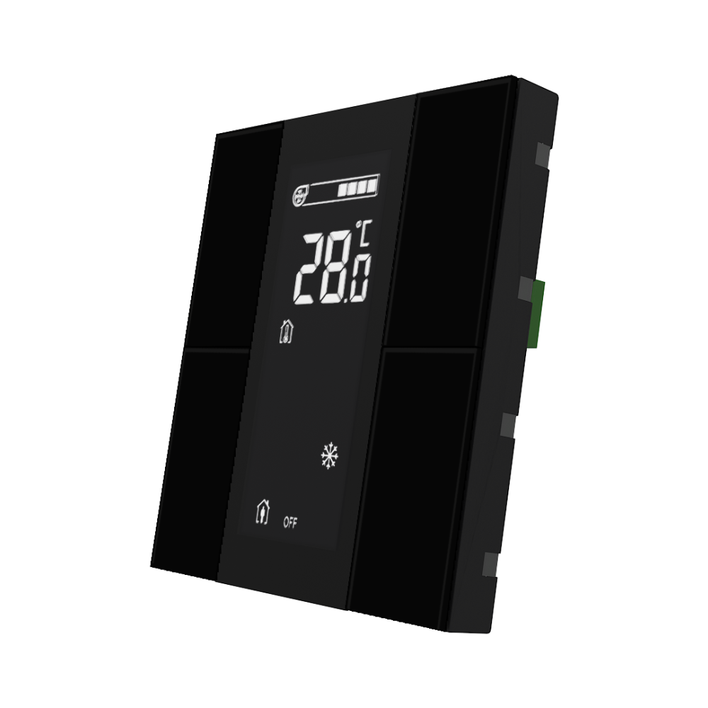 iSwitch+ is more than just a room controller, with temperature and humidity sensors and extremely powerful control and logic options. It comes with 8 different button options and has 2 main models. One is the thermostat switch model, which differs from its competitors with its LCD size, and the other is the classic model without LCD. It controls all functions required for building automation such as switching, toggle, dimming, shutter/shutter, thermostat controls, scenarios, value, 2 channel and cascade switching mode features.