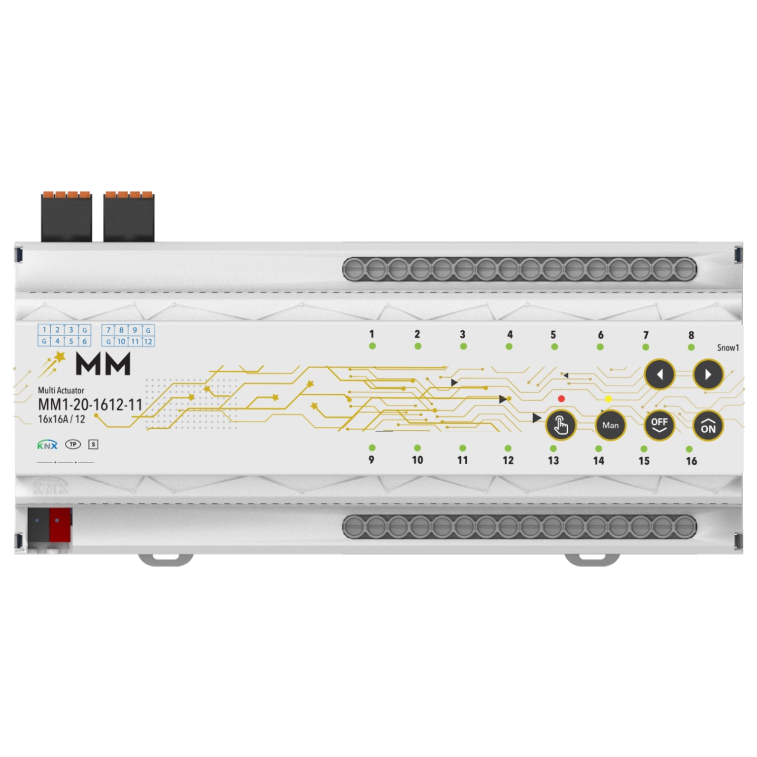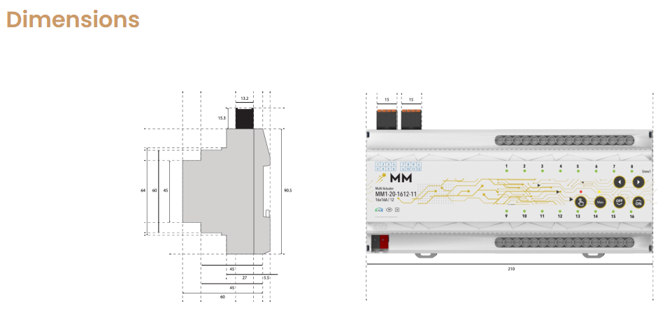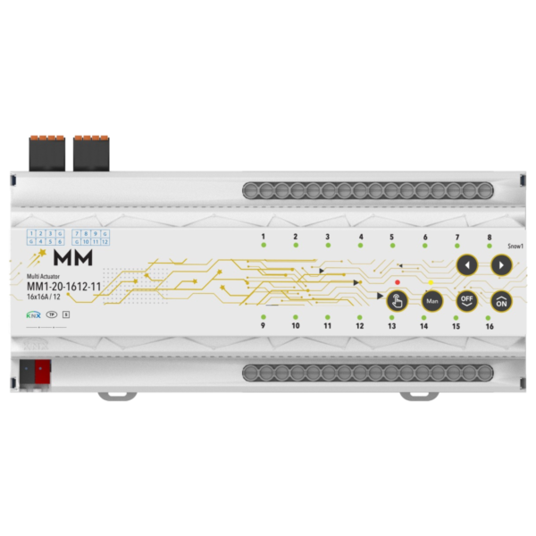 MM1-20-1612-11 is a KNX compatible automation device that offers different usage purposes together. Manages lighting, shutter/blinds, fancoil, water, electricity and energy control like a Maesto.