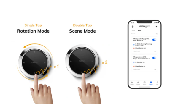 Preset scenes of the preferred environment of light, sound, etc. can be triggered by double-tab. The scene can be customized in the Moorgen mobile app.